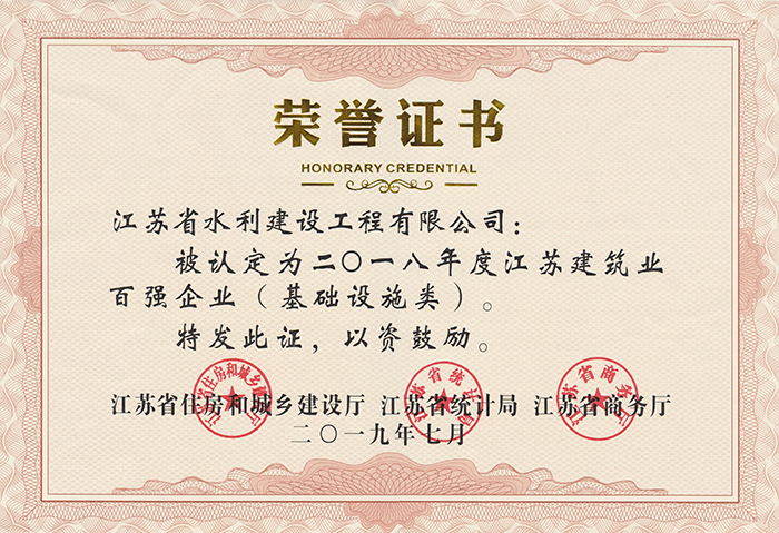 公司連續多年被評為全國水利建設先進集體、全國優秀水利企業、全國安全生產和質量管理先進單位、江蘇省文明單位、建筑業百強企業,榮獲江蘇省“五一勞動獎章”。
